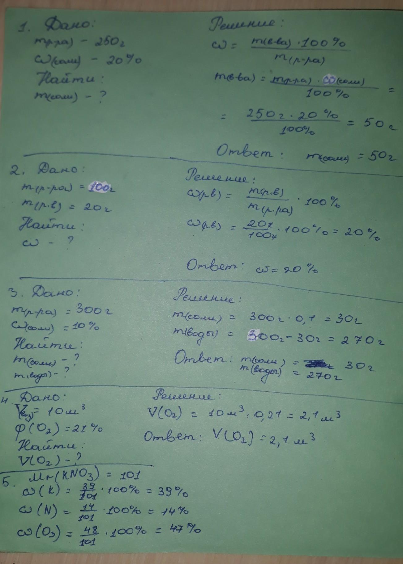 1.Определите массу соли, содержащейся в 250 г раствора с массовой долей соли 20%.