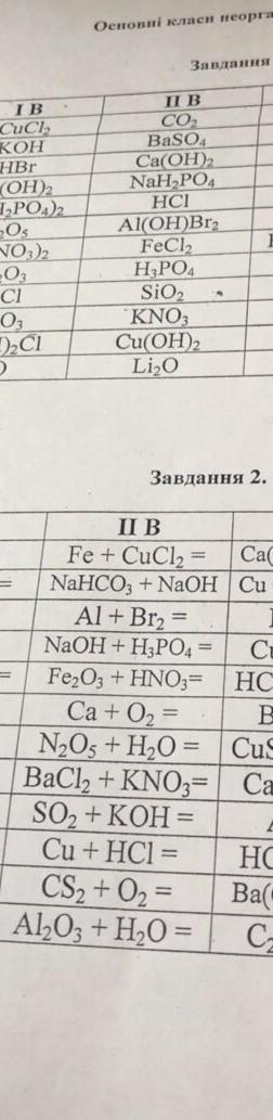 СРОЧНО!!!! помогите пожалуйста сделать химию. там 2 вариант, в 1-ом задание надо написать класс вещества (кислоты, соли, оксиды), а во 2-ом задание надо решить уравнение