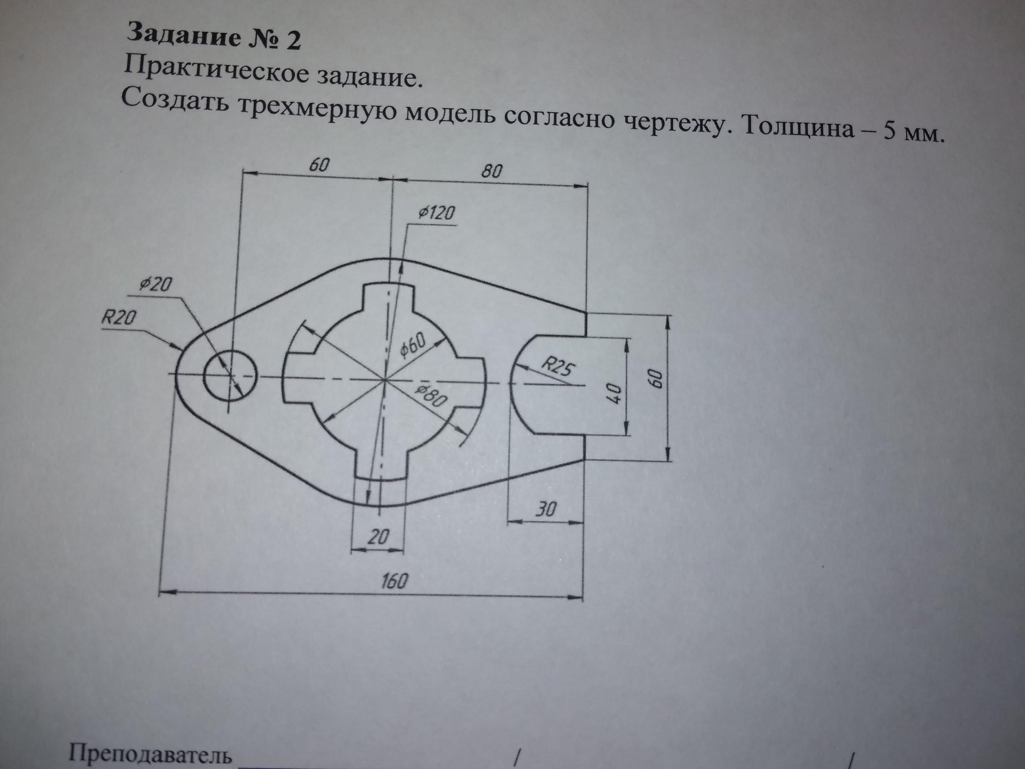 создать трехмерную модель согласно чертежу. толщина 5мм