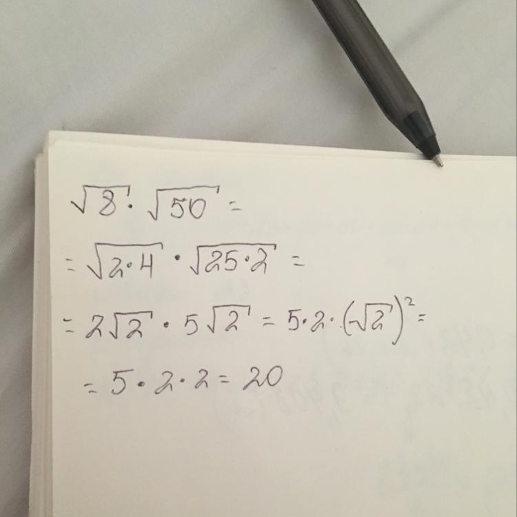 √8·√50=2√2·5√2=10·(√2)²=10·2=20.