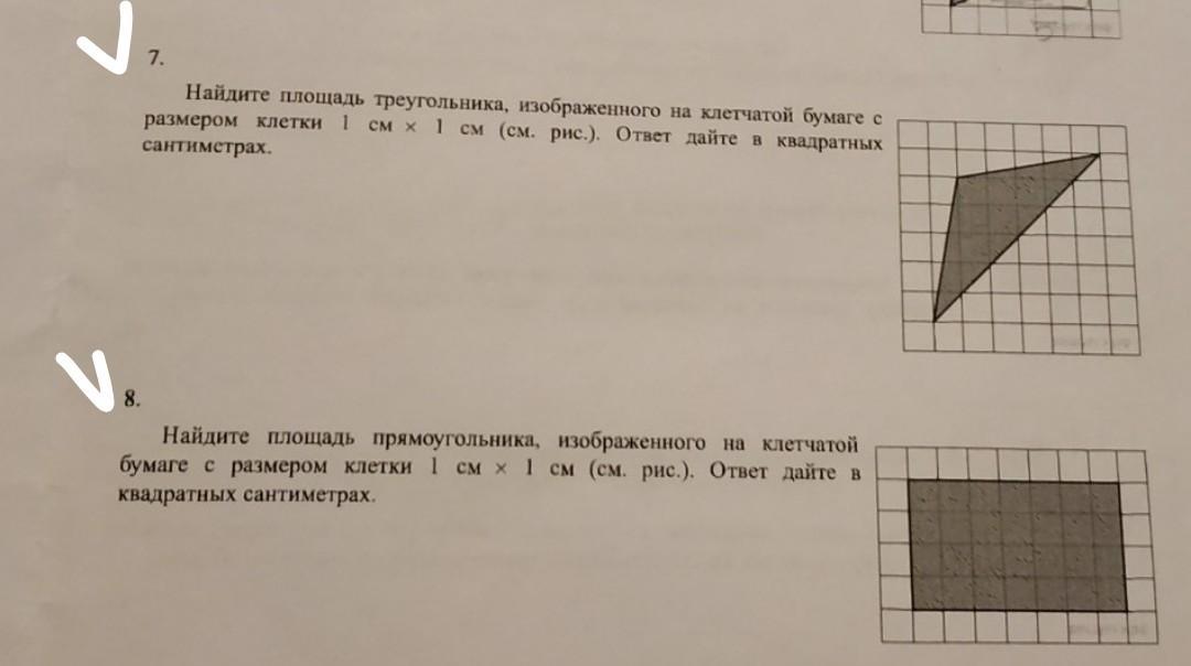 7) Найдите площадь треугольника, изображенного на клетчатой бумаге с размером клетки 1 см × 1 см (см. рис).