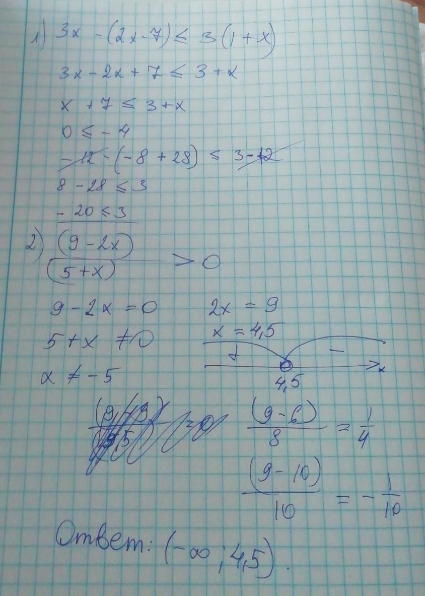 Какое из чисел является наименьшим целым числом, являющимся решением неравенства 3х – ( 2х – 7) ≪ 3( 1 + х)