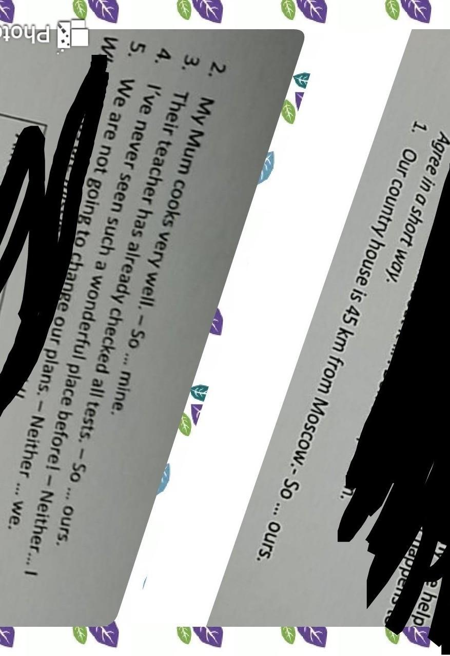 1 so is ours 2 so does mine 3 so has ours 4 neither have I 5 neither are we