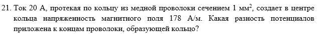 Н=178 А/м, I=20 A, S=1 мм², ∆ф=U -?