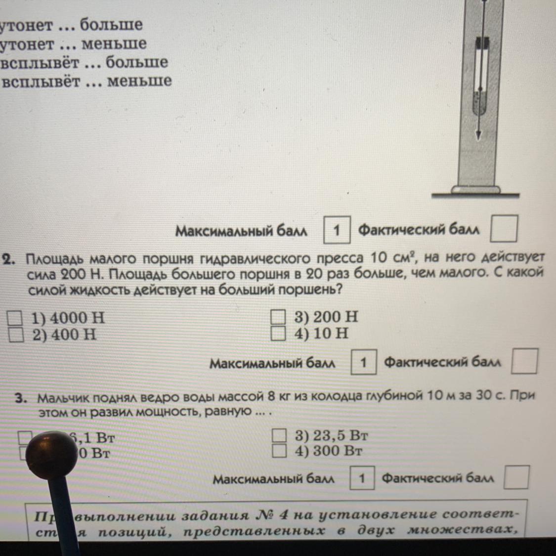 Площадь малого поршня гидравлического пресса 10см2,на него действует сила 200Н.Площадь большего поршня в 20 раз больше,чем малого.С какой силой жидкость действует на больший поршень?Очень прошу,помогите.Заранее спасибо.(с подробным решением)