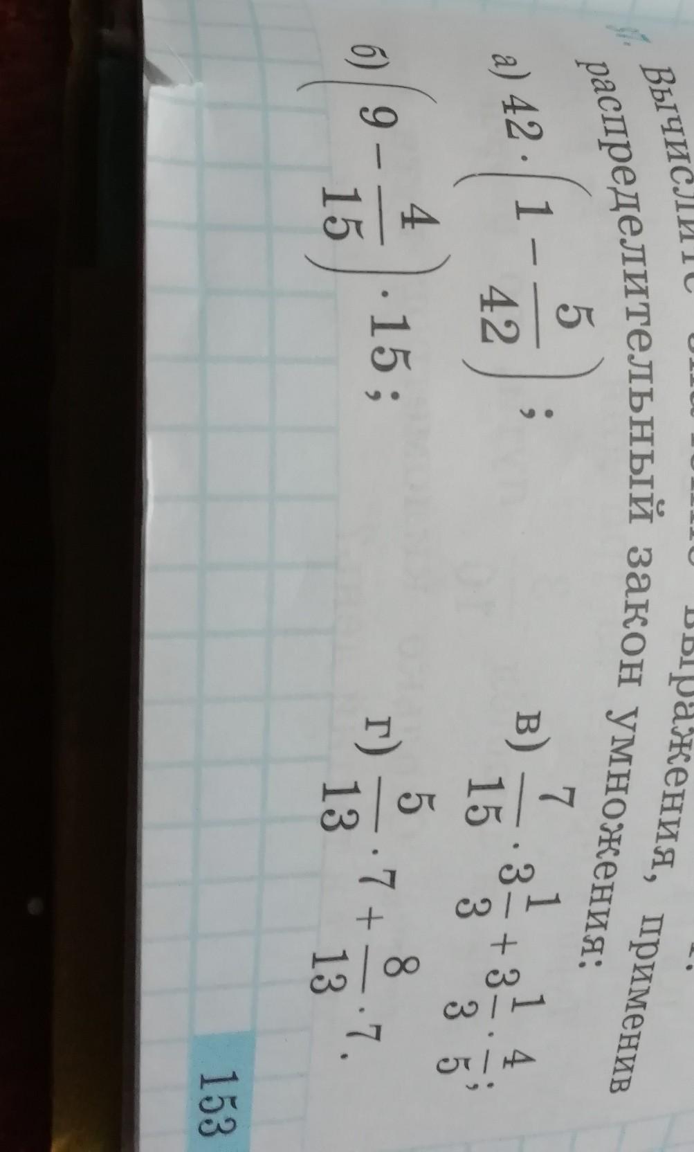 г) 5/13*7+8/13*7=7*(5/13+8/13)=7*15/15=7*1=7