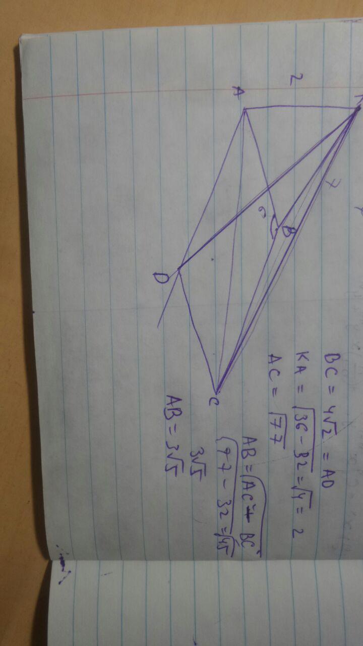 По теореме о трех перпендикулярах Треугольник КВС прямоугольный и прямым углом является угол КВС и по теореме пифагора ВС равен 81-49=32 ,извлекаем из под корня и ВС равен 4.