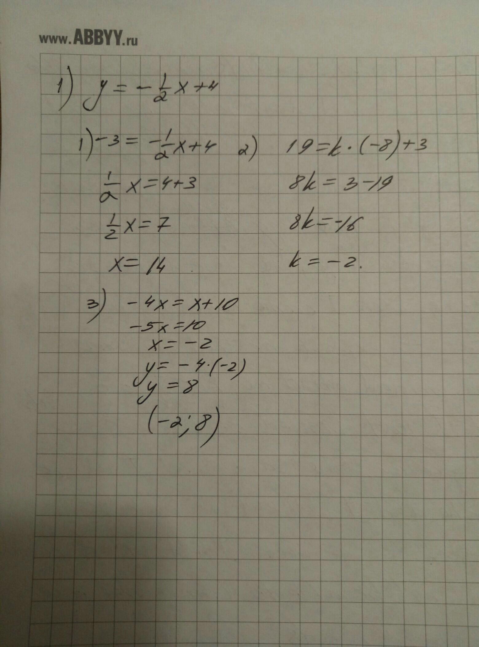 2. График функции y=kx+3 проходил через точку N (-8; 19). Найдите k.