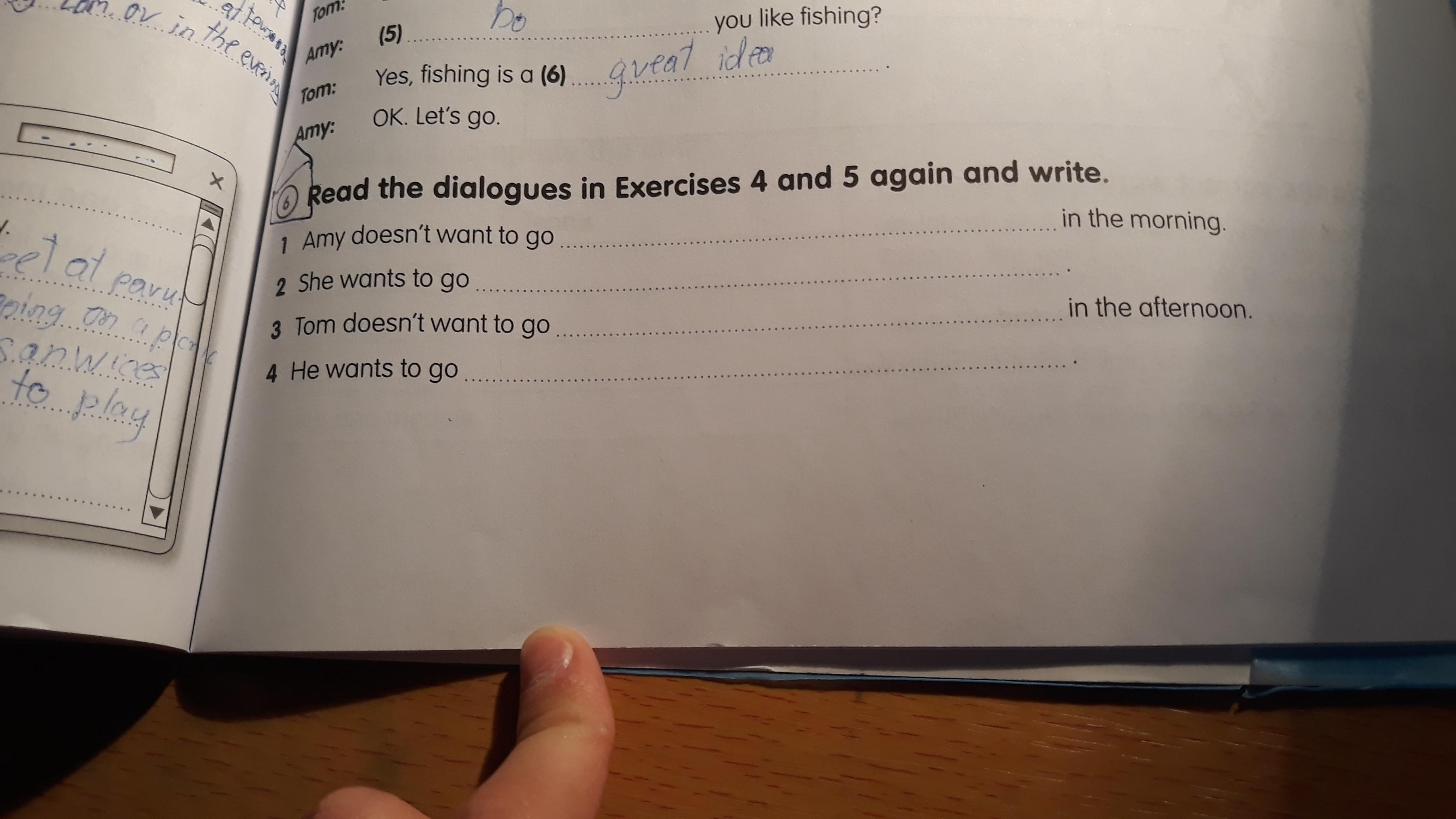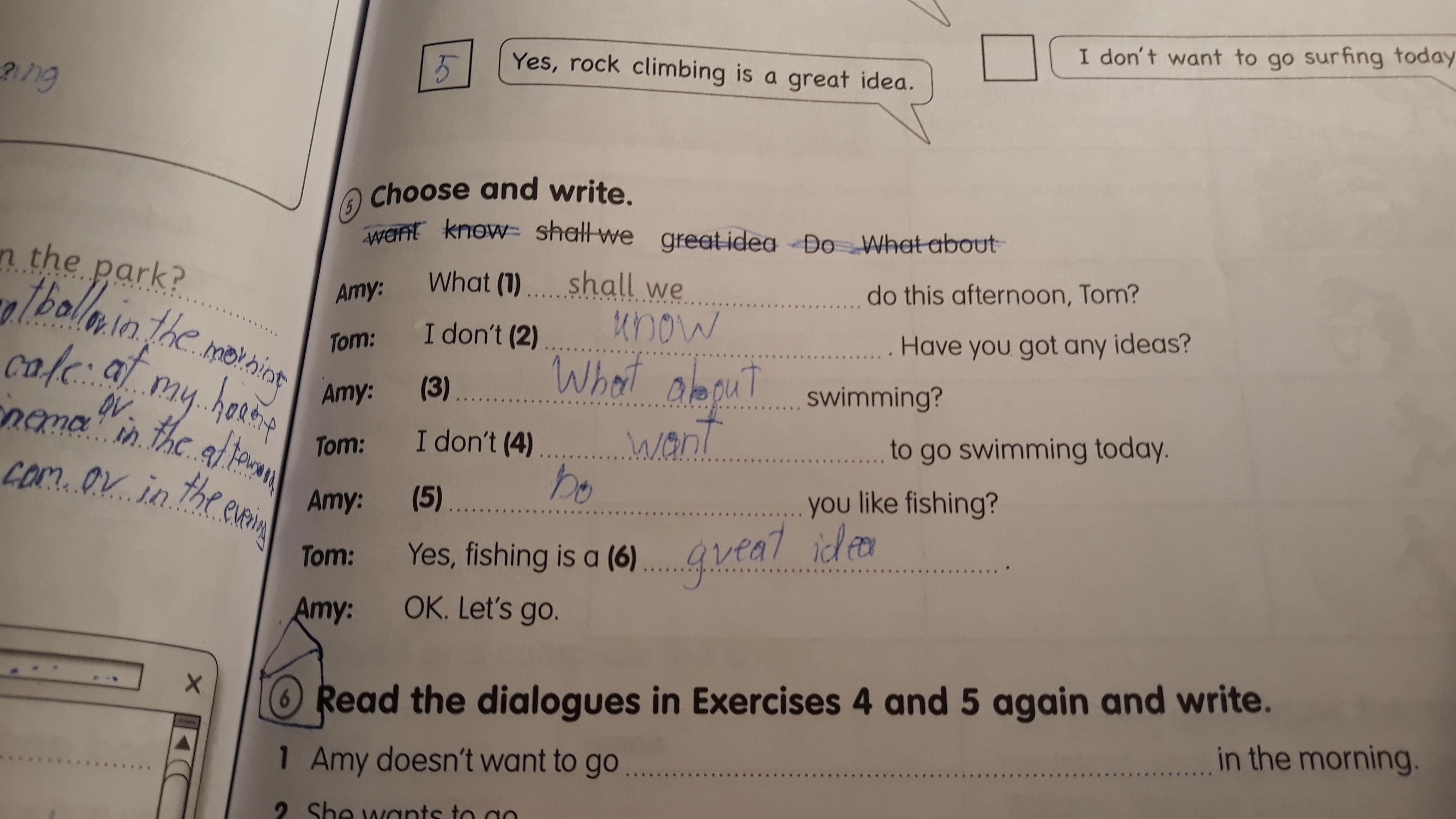 6) Read the dilogues in Exerecies 4 and 5 again and white.