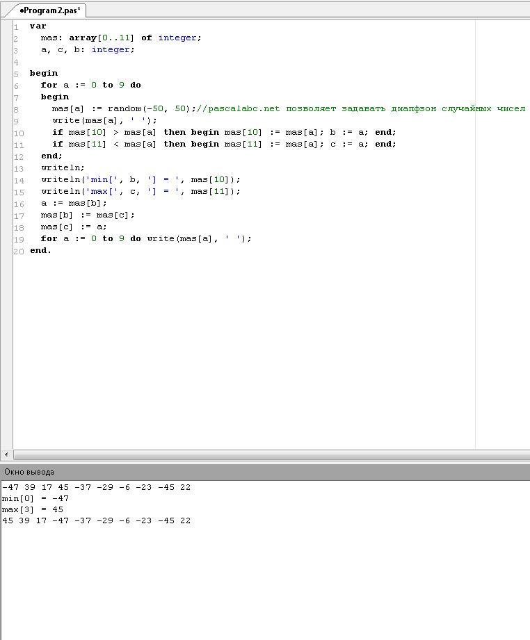 mas[a] := random(-50, 50);//pascalabc.net позволяет задавать диапазон случайных чисел