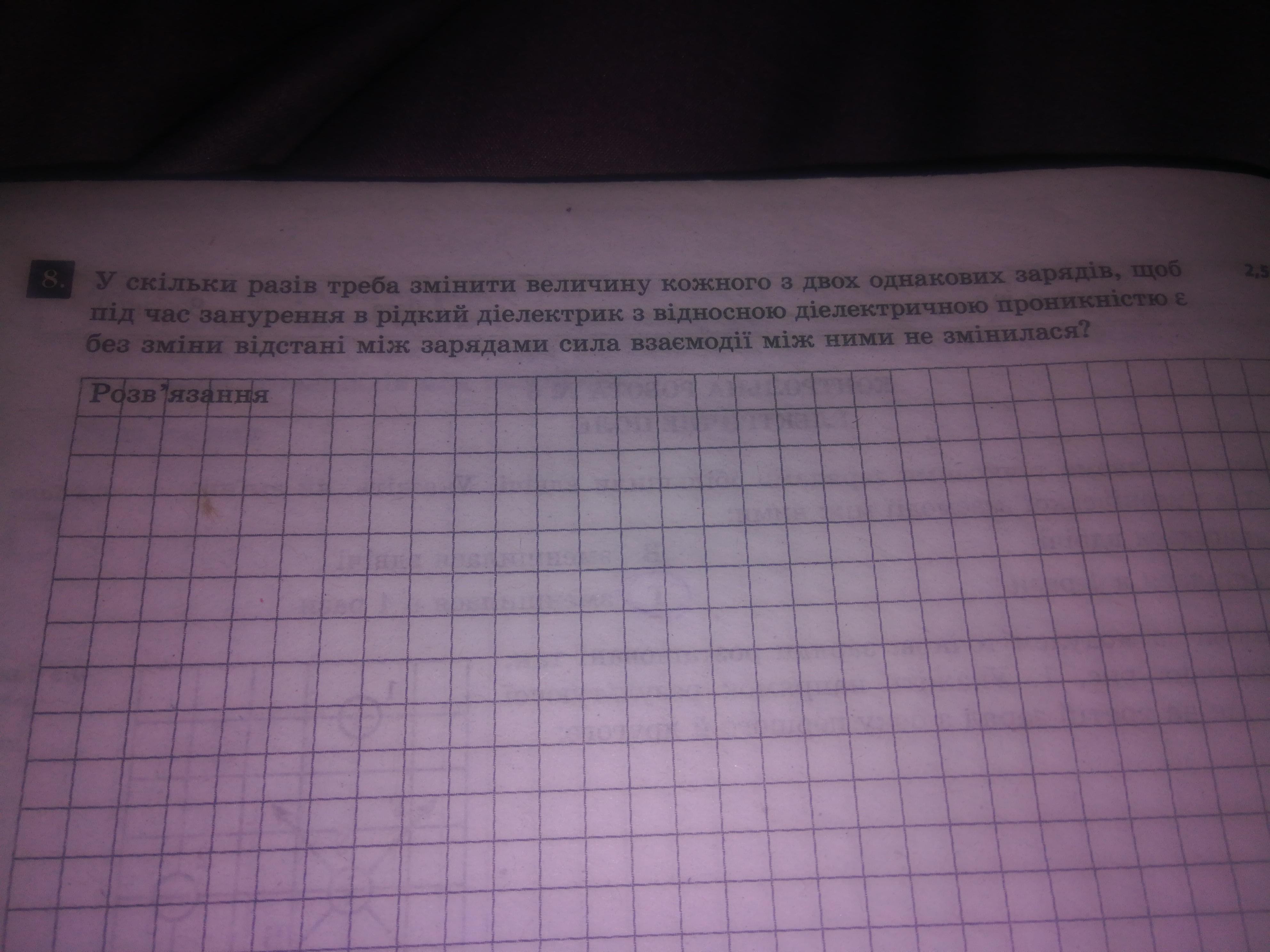 у скільки разів треба змінити величину кожного з двох однакових зарядів щоб під час занурення в рідкий діелектрик з відносною діелектричною проникністю "e" без зміни відстані між зарядами сила взаємодії між ними не змінилася?