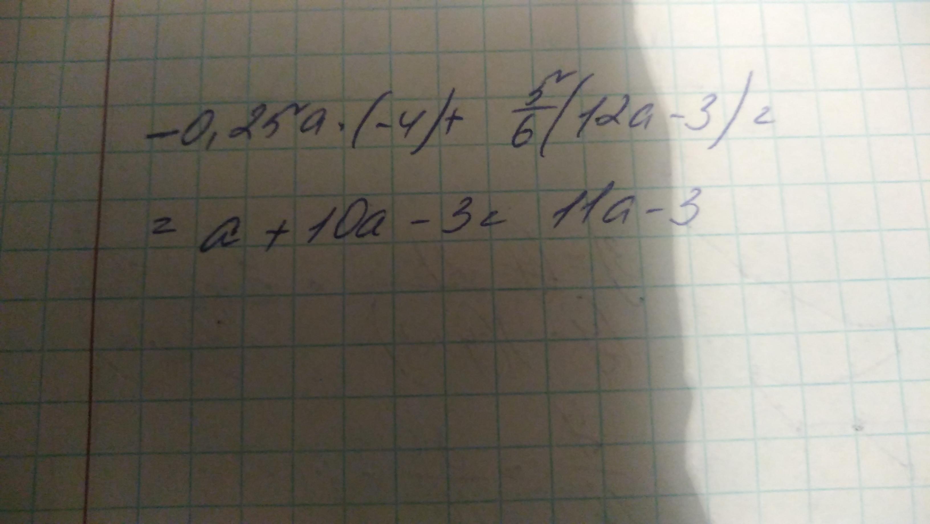 -0,25a * (-4)+ 5/6(это дробь обыкновенная) * (12a-3)