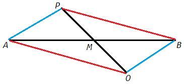 Диагонали четырехугольника APBO точкой пересечения делятся пополам.