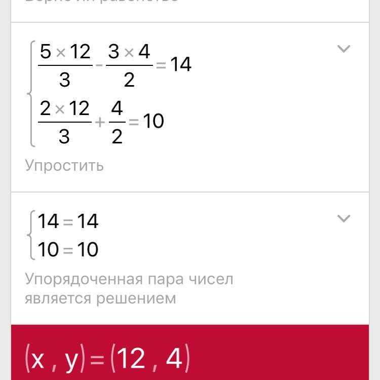 Надо выразить с второго уравнения x, потом подставить в первое место х. Дальше когда подставишь выразить надо y и получишь у. Потом полученный результат y подставь в выраженный x (x=15 - 3/4 y).