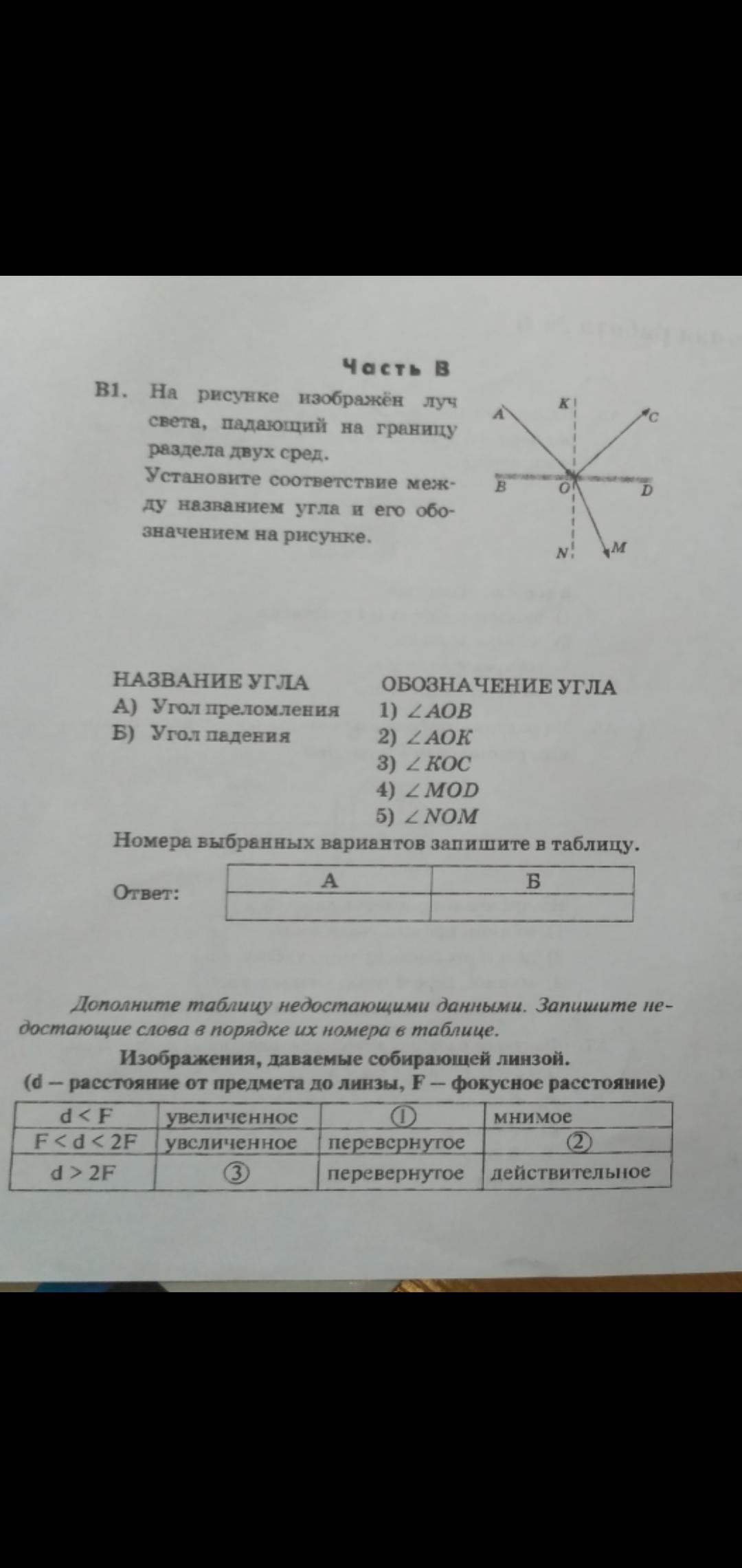 Б) Угол падения это отрезок падающий на оптический фокус который в последующем отражается и преломляется, такой угол на рисунке только один