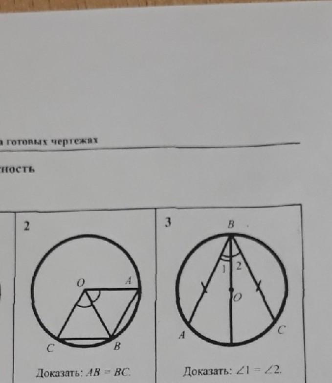 2. Смотри. ОС=ОА(радиусы) ОВ-общий угол СОВ равен углу АОВ Значит треугольник СОВ=треугольнику АОВ А значит АВ=ВС как соответственные стороны.