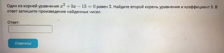 Один из корней уравнения равен 3. Найдите второй корень уравнения и коэффициент b. В ответ запишите произведение найденных чисел