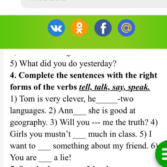 Ответ:1 talk 2 tell 3speak 4 tell 5 say