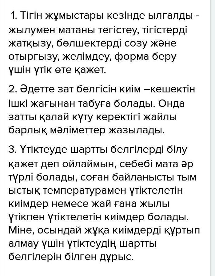 4. Қалай ойлайсыз, үтіктеуде шартты белгілерді білу қажет пе? Себебін жазыңыз.