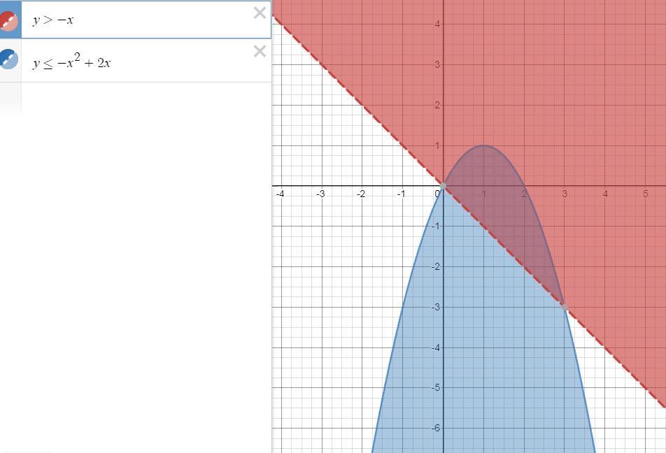 область внутри параболы и точки на ней являются решением неравенства y<=-x^2+2x