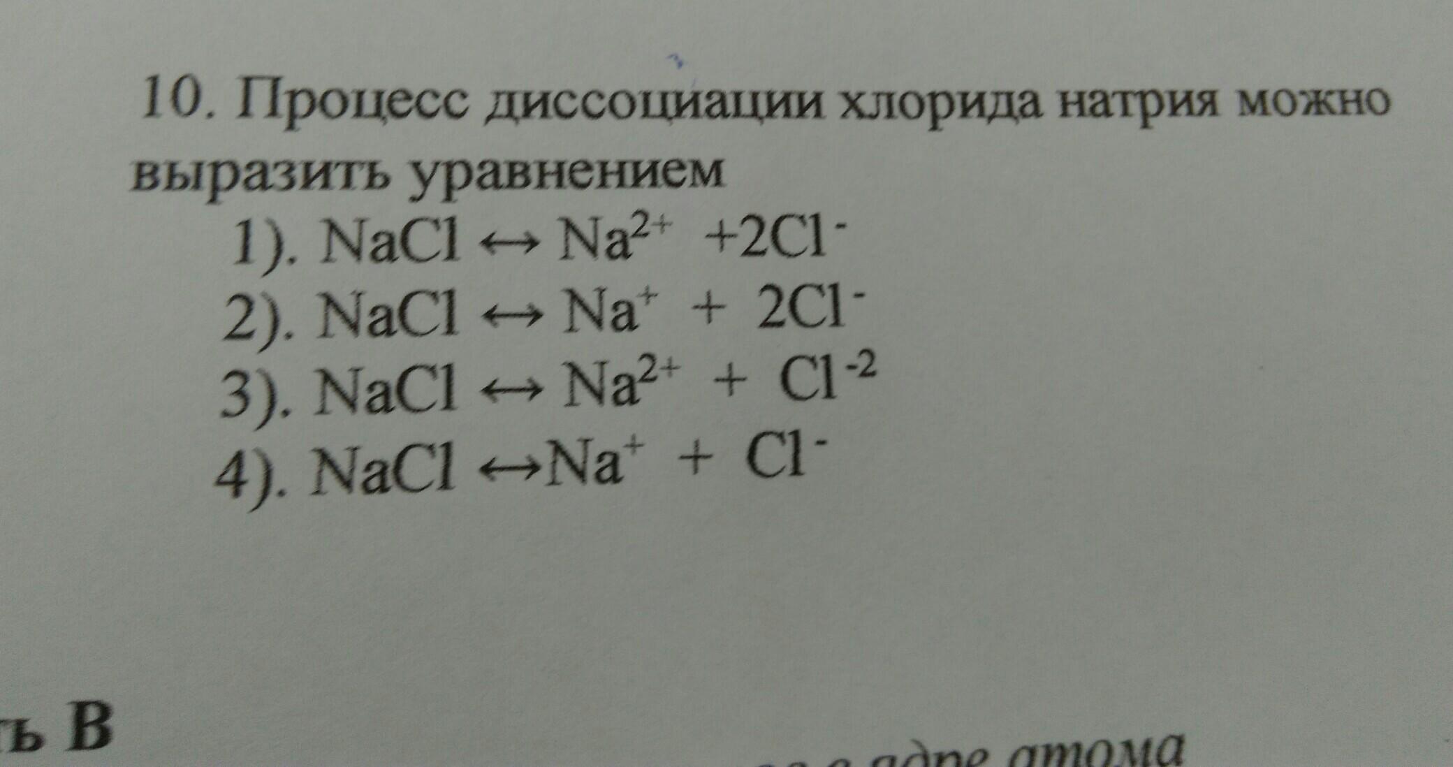Объяснение: Процесс диссоциации хлорида натрия можно выразить уравнением CaCl2 ⇔ Ca(2+) + 2Cl(-)