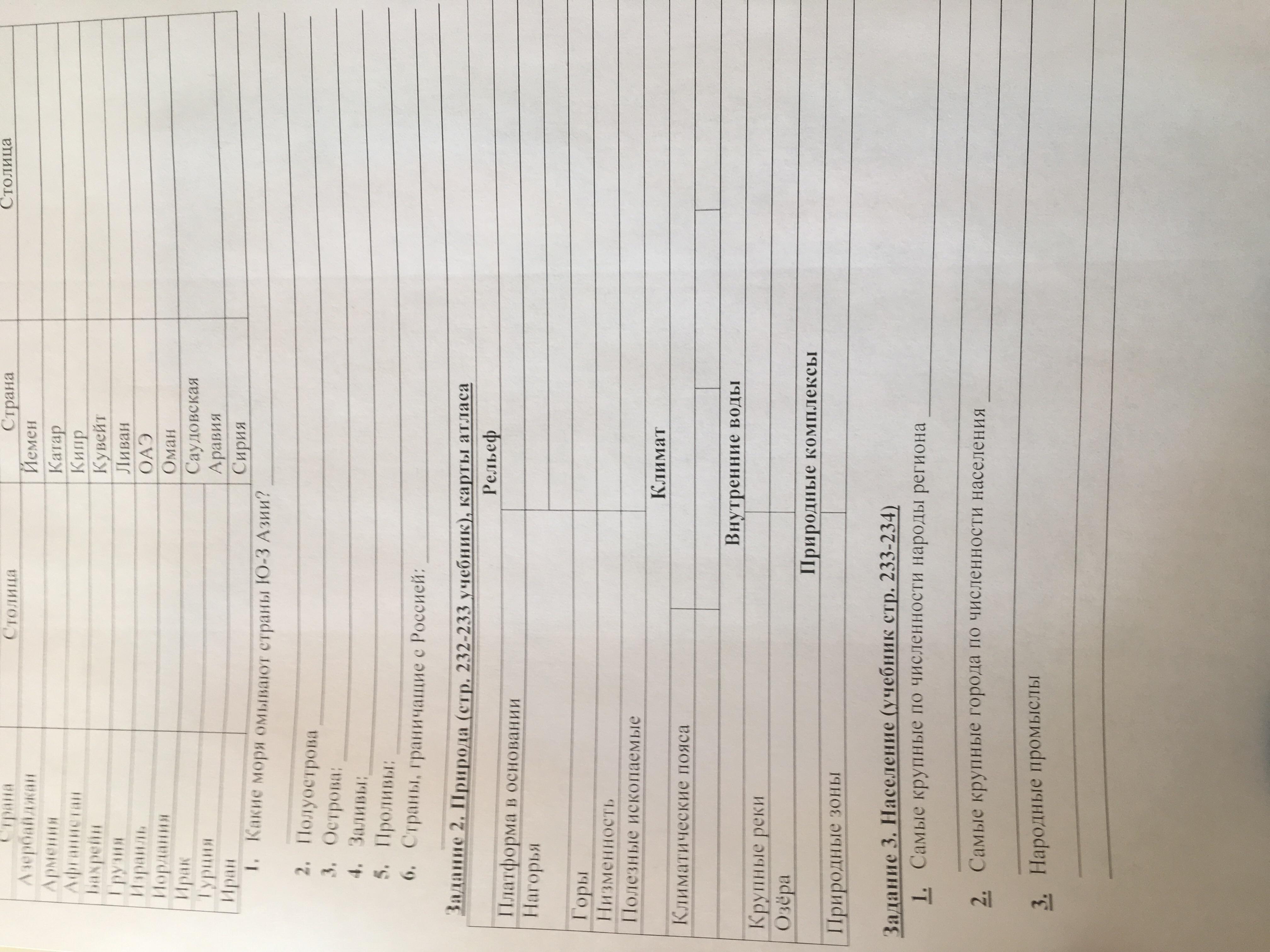 Погните с таблицей по географии 7 класс, Юго-Западной Азии