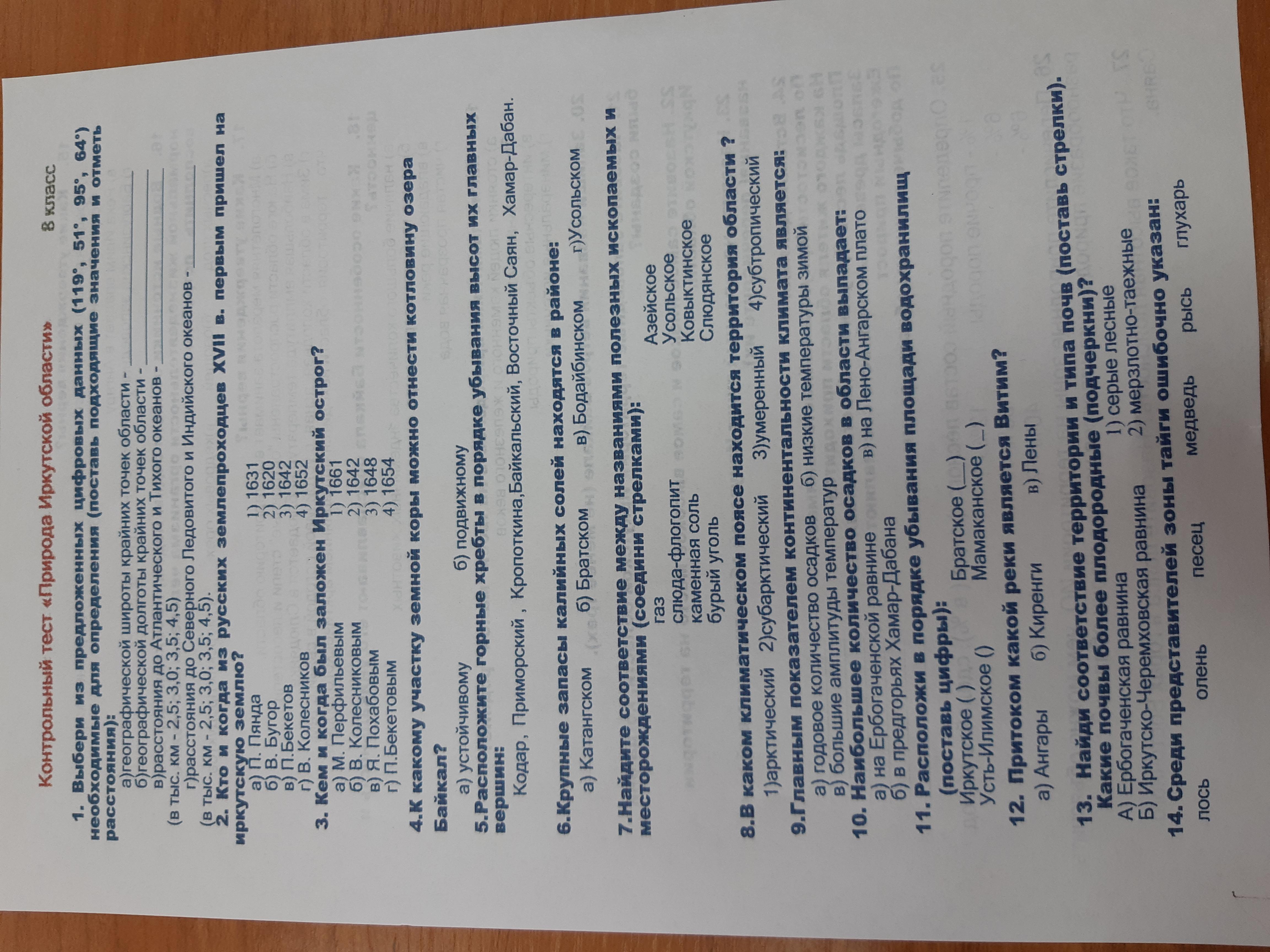 Помогите пж Георафия Иркутской области контрольный тест по теме природа иркутской области.