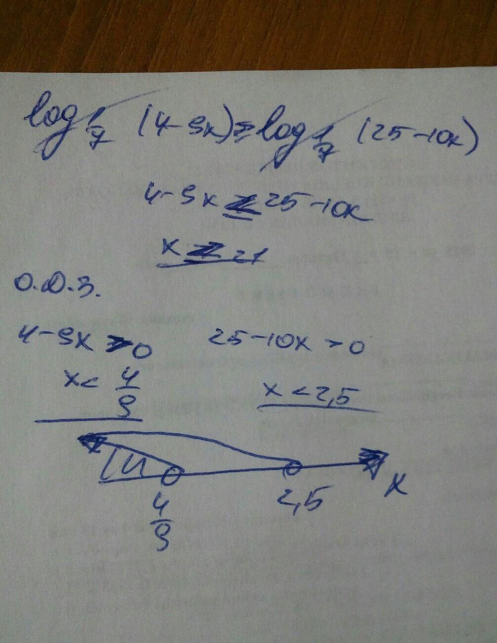 Реши неравенство: log1/7(4−9x)≥log1/7(25−10x) .