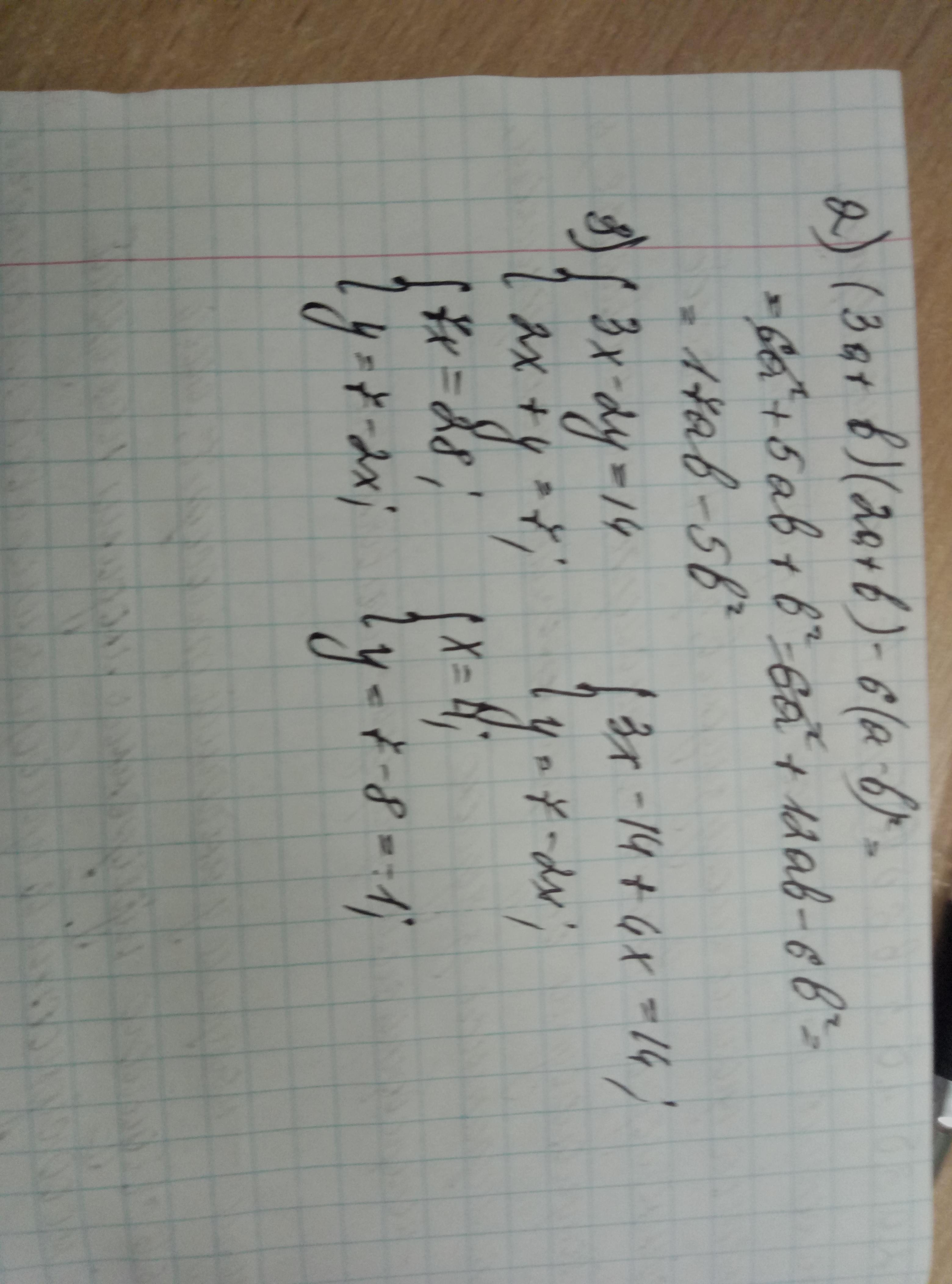 2. 6a^2+2ab+3ab+b^2-6a^2+12ab-6b^2 = 17ab - 5b^2
