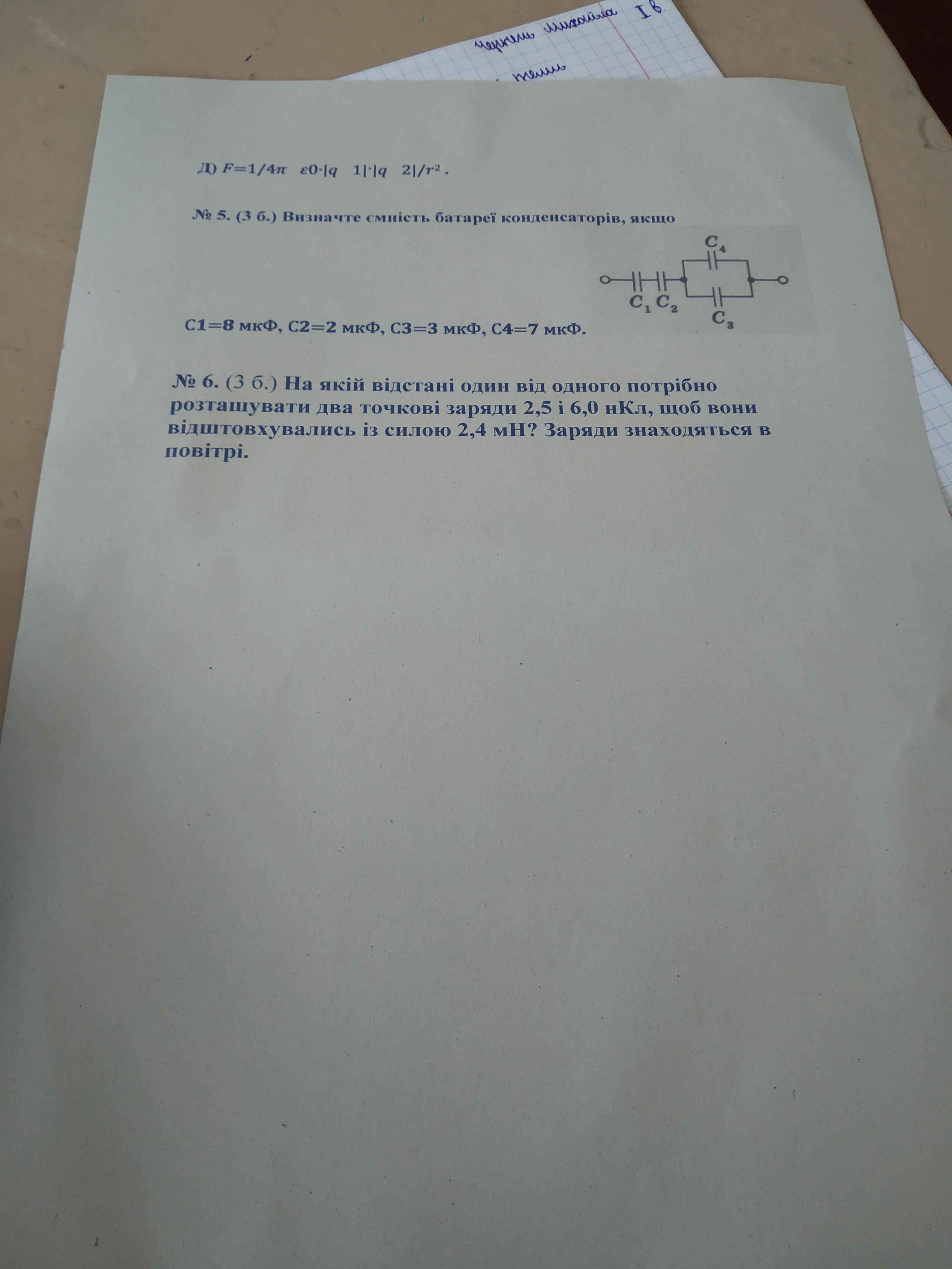 Визначте ємність батареї конденсаторів, якщо С1=8мкФ С2=2мкФ С3=3мкФ C4=7мкФ