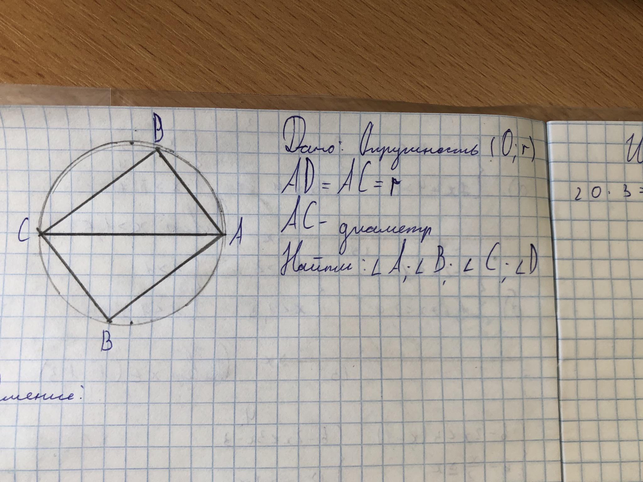 1. ∠D=∠B=90 т.к. они опираются на диаметр(или же на полу окружность)