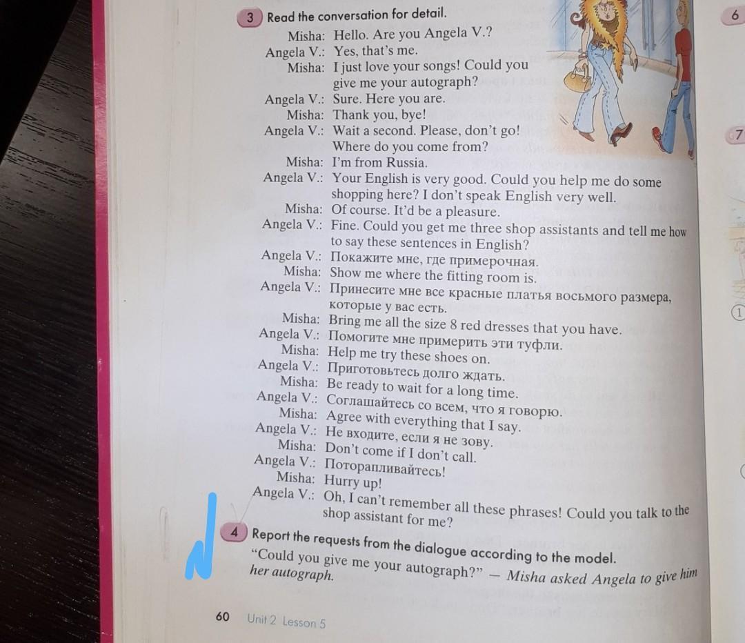 She couldn't remember all those phrases and asked Misha to talk to the shop assistants for her.
