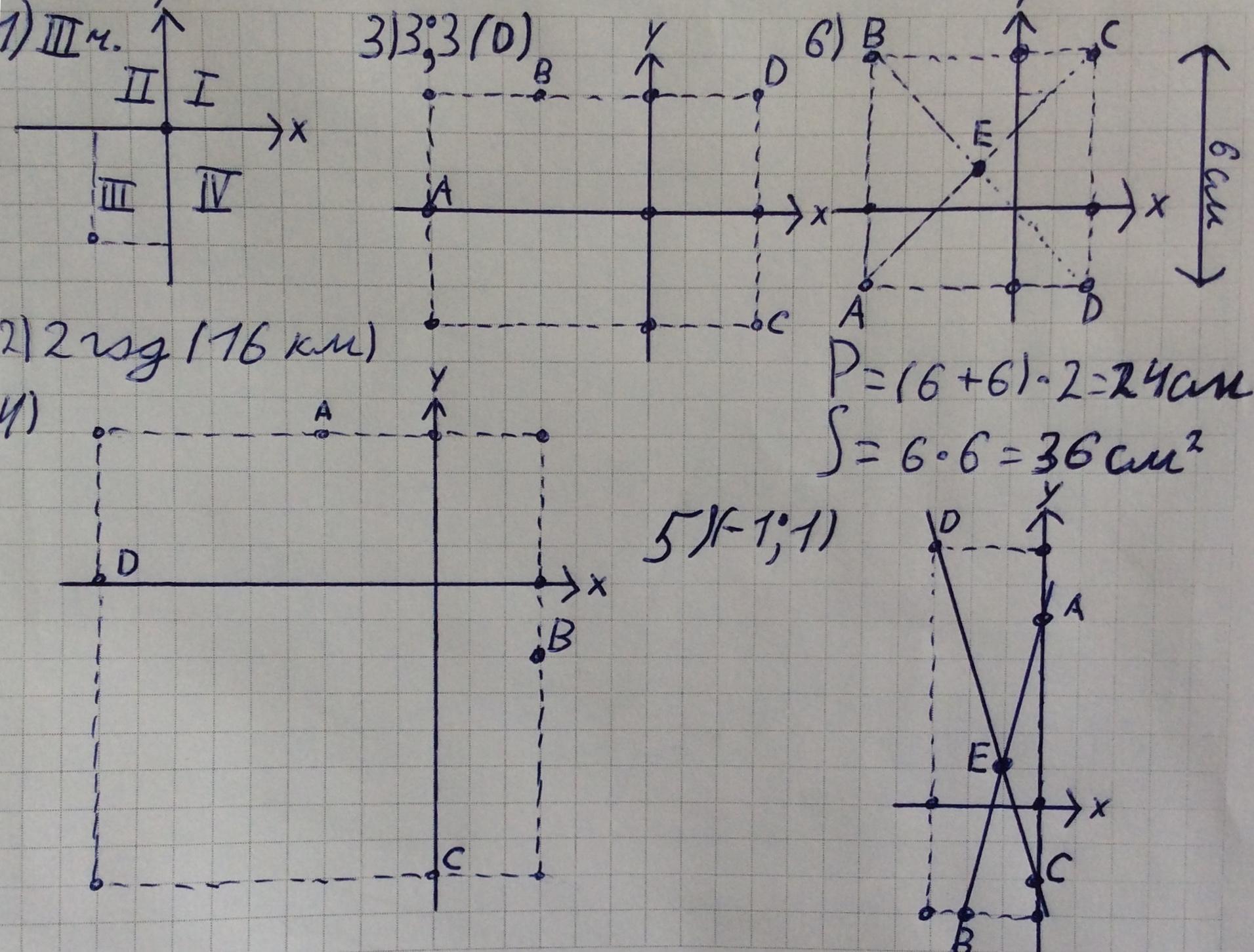 6) Дано координати трьох вершин прямокутника ABCD: A(–4; –2) C(2; 4) D(2; –2). Знайти координати четвертої веришини, координати точки перетину діагоналей. Знайти площу та периметр прямокутника, вважаючи довжину одиничного відрізка рівною 1 см. Зробіть малюнок.