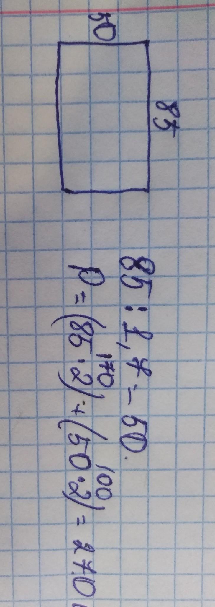 Ширина прямоугольника равна 85 см, а длина в 1,7 раза меньше. Найдите периметр прямоугольника и выразите его в дециметрах