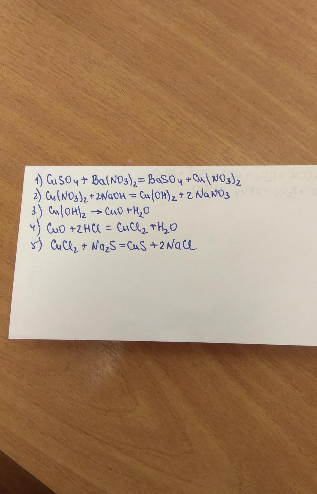 запишите уравнения реакций с помощью которых можно осуществить следующие превращения: сульфат, медь, Cu(NO3), гидроксид меди , оксид меди, CuCl2 , сульфид меди