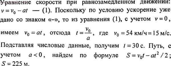 Потяг рухається рівносповільнено маючи початкову швидкість 54 кмгод, і прискорення -0.5 мс. Через який час і на якій відстані від початку гальмування потяг зупиниться?