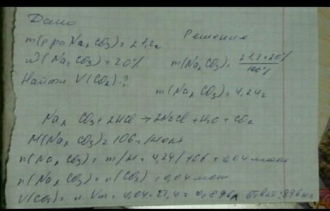 до розчину натрій карбонату масою 21,2 г із масовою часткою солі 20% долили надлишок розчину хлоридної кислоти який обєм газу виділяються при цьому