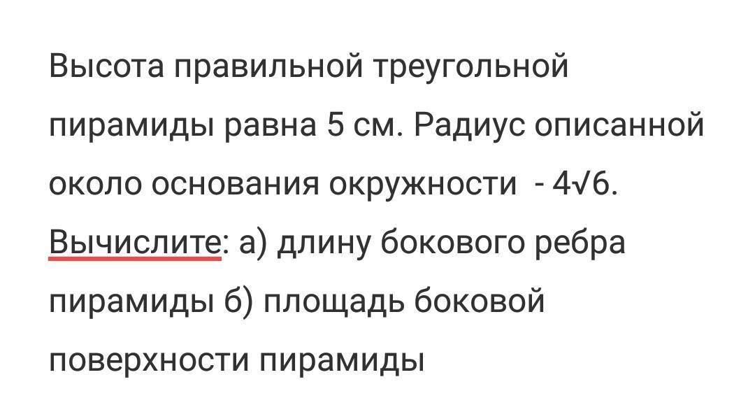 а)Радиус описанной около основания окружности - это 2/3 высоты треугольника, лежащего в основании, и он равен (2/3)*а√3/2=4√6, откуда а=12√2- сторона основания. По теореме ПИфагора найдем боковое ребро пирамиды. √(5²+(4√6)²)=√(25+96)=√121=11/см/