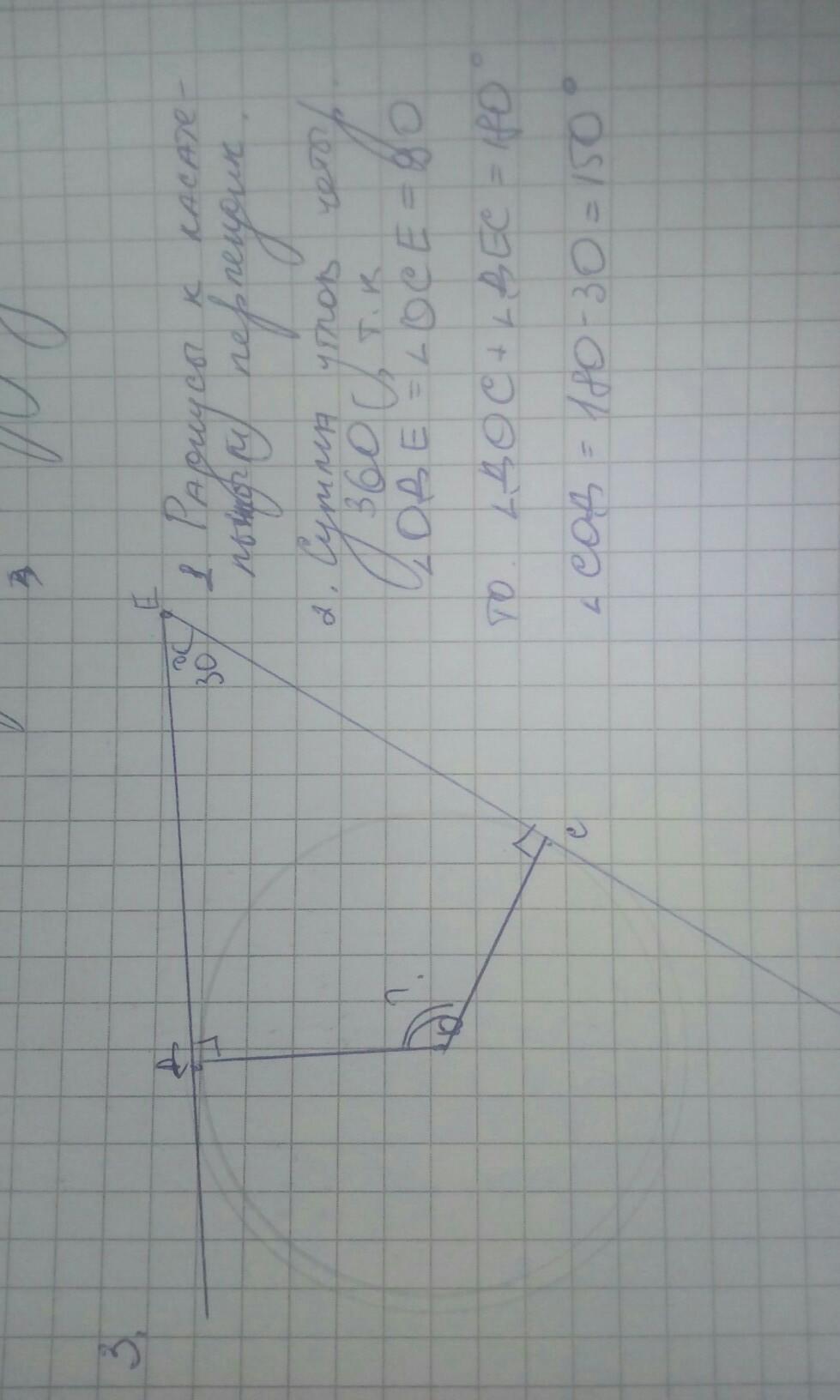 3.О-центр кружности.точка д и с лежат на окрокружности.де-касательная к окружности проходящяя через точку д угол едс равно 30 градусов.Найдите градусную меру угра осд.