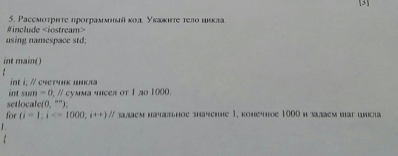 Телом цикла является тот кусочек кода, который заключен внутри оператора цикла (в данном случае - это for)