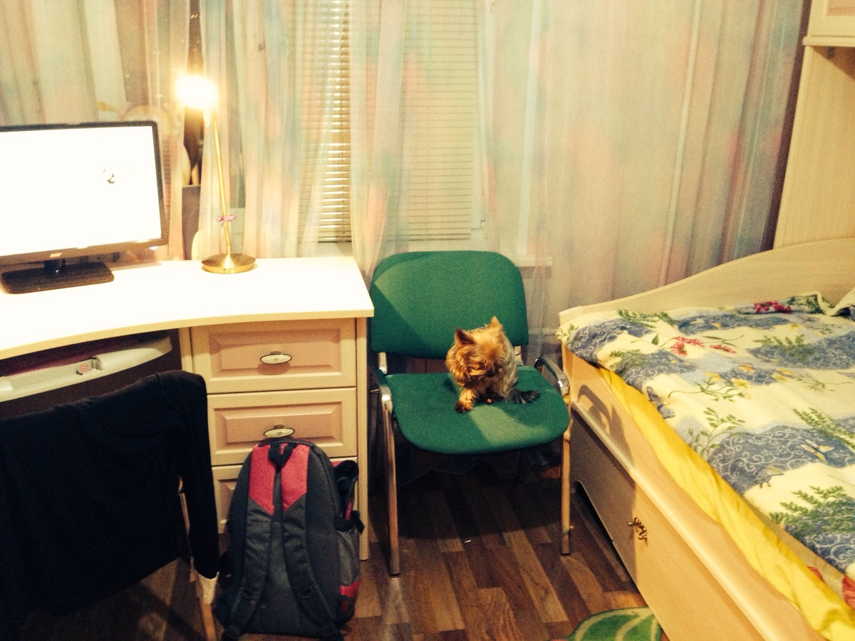 моя комната просторная,большая.в моей комнате есть большой рабочий стол,на котором стоит компьютер.в моей комнате живет собака её зовут ....... я её очень люблю