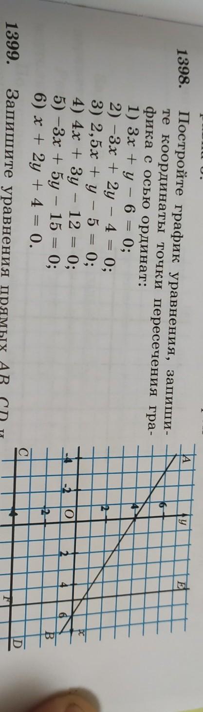 Постройте график уравнения, запишите координаты точки пересечения графика с осью ординат.