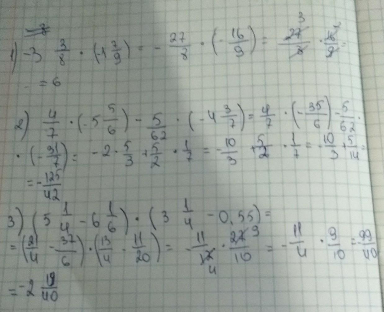 2) 4/7 * (-5 5/6) - 5/62 * (-4 3/7) = ?