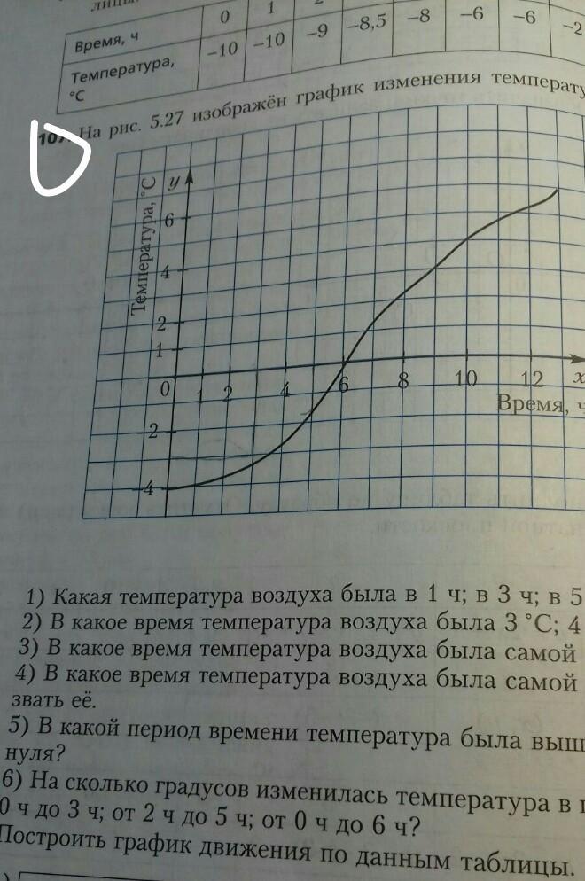 1) Какая температура воздуха была в 1 ч; в 3 ч; в 5 ч?