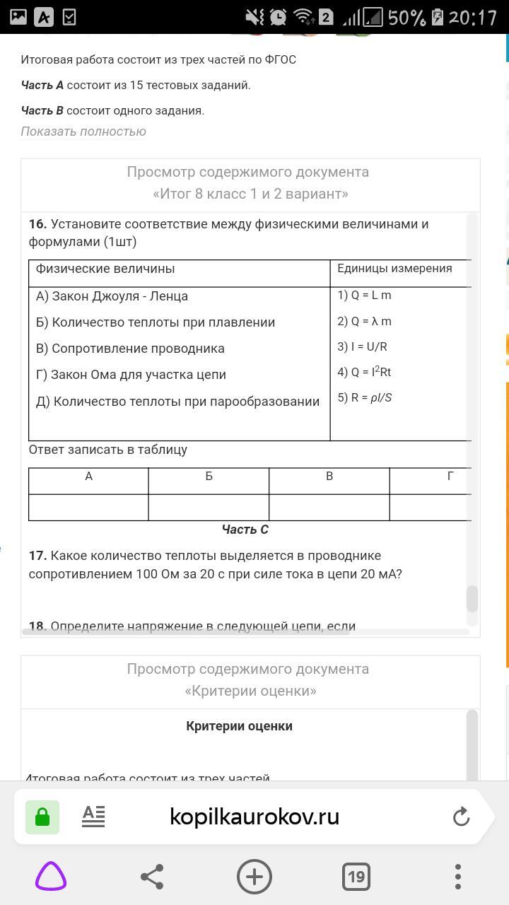 16. Установите соответствие между физическими величинами и формулами (1шт)