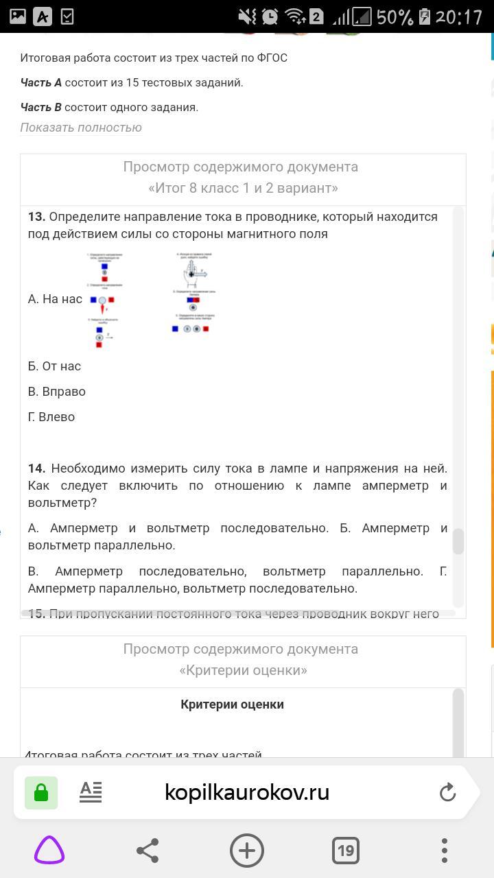 13. Определите направление тока в проводнике, который находится под действием силы со стороны магнитного поля