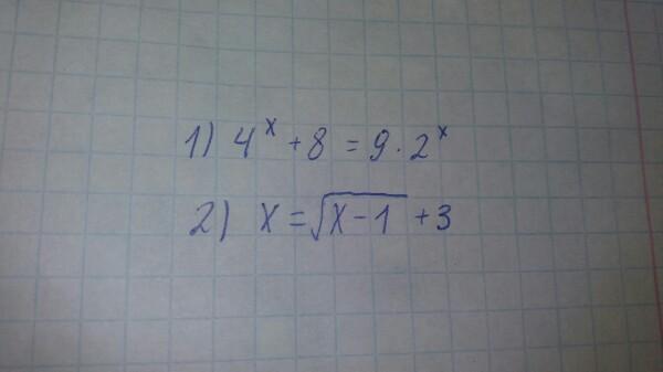 1) Дано уравнение 4^x+ 8 = 9*2^x.