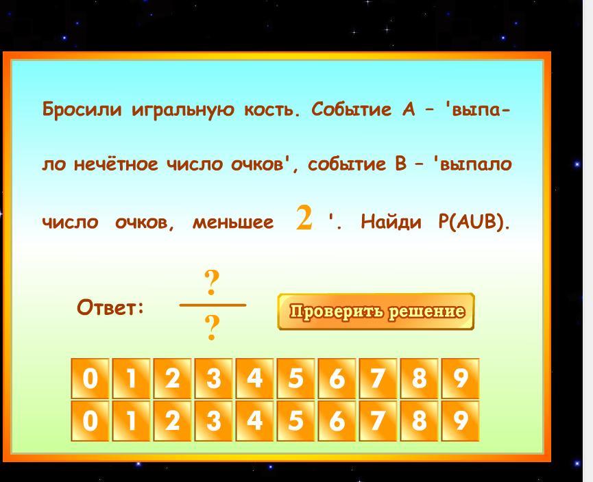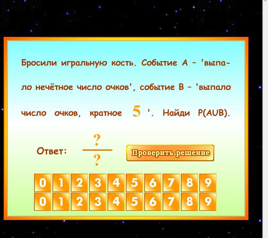1) У игральной кости шесть сторон с цифрами от 1 до 6