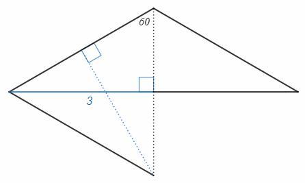 Серединный перпендикуляр к основанию равнобедренного треугольника является также биссектрисой - делит угол против основания на два угла по 60, и медианой - делит основание на два отрезка по 3.