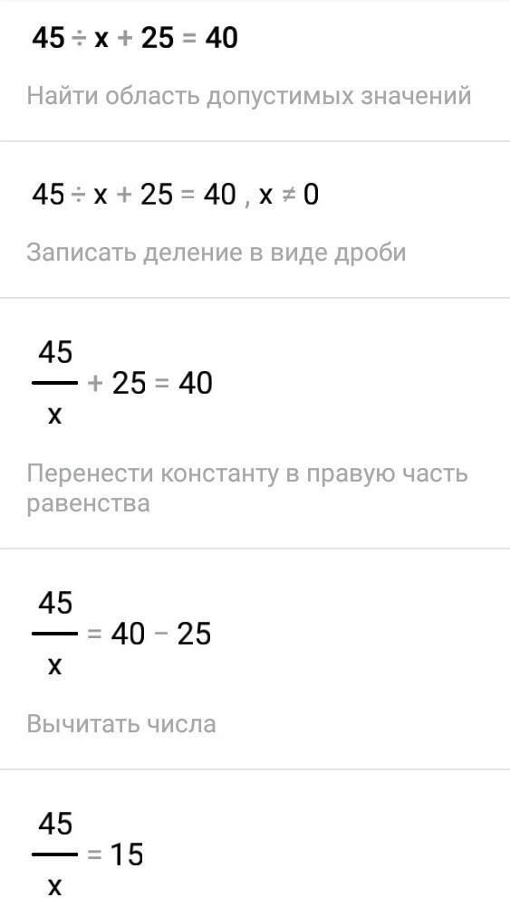 45/х=40-25=15 ; х=45/15=3
